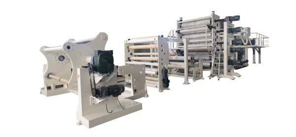 (2)設備高密度聚乙烯(xī)平膜擠出成型後的單向拉伸薄膜生產成型,這條生產線中的主要組成設備有:單螺杆擠出機、衣架(jià)型(T型(xíng))成型模具、冷卻定型鯤、牽引(yǐn)裝置、拉伸輯(jí)、靜電處理裝置、切邊裝置和收卷裝置等。