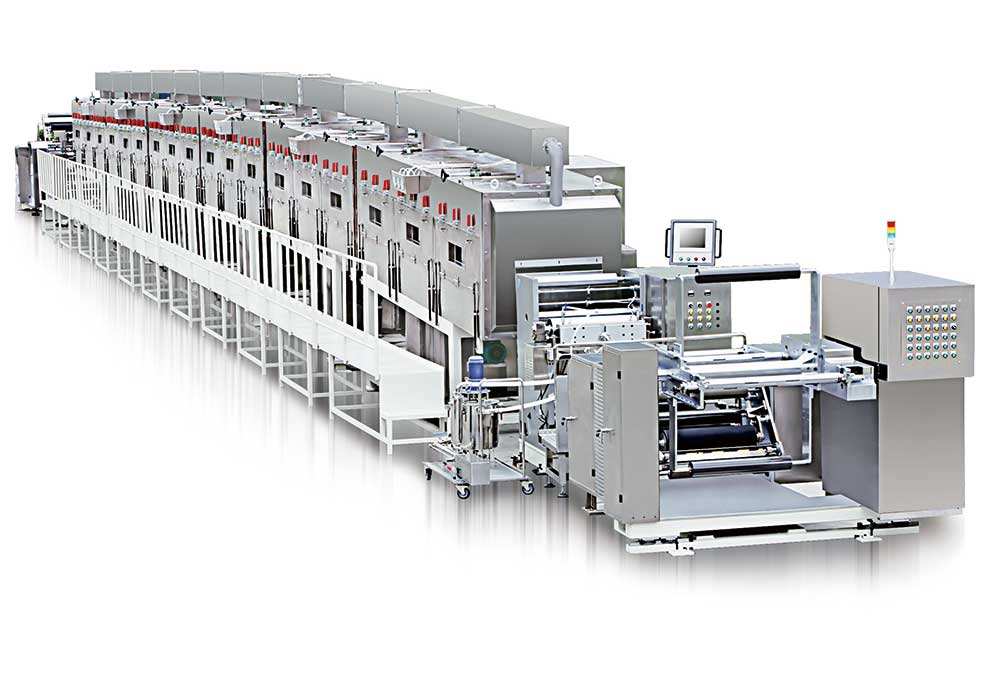涉(shè)及一種BOPP塗布膜。BOPP亮白塗布膜,其特征在於:它由功能層、次功能層(céng)、芯層(céng)和第(dì)三功能(néng)層組成,功能層、次功能層、芯層和第三功能層依次布置,功能層、次(cì)功能層、芯(xīn)層和第三功能層采用共擠出後經雙向拉伸而(ér)成一體;功能層、次功(gōng)能層、芯層和第三功(gōng)能層所占質量百分數為:功能層9~10%、次功能層3~5%、芯層80~82%、第三功(gōng)能層6~7%;次功能層的(de)材料由聚丙烯、TiO2、抗靜電爽滑劑組成,各原料所占質量百分數為(wéi):聚丙烯75%、TiO2 20%、抗(kàng)靜電爽滑劑5%。該膜亮白效果好。塗布機設備-塗(tú)布機-塗(tú)布生產線(xiàn)